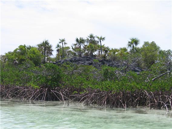 Crystal clear water, mangroves, rock and palms. Very interesting terrain
